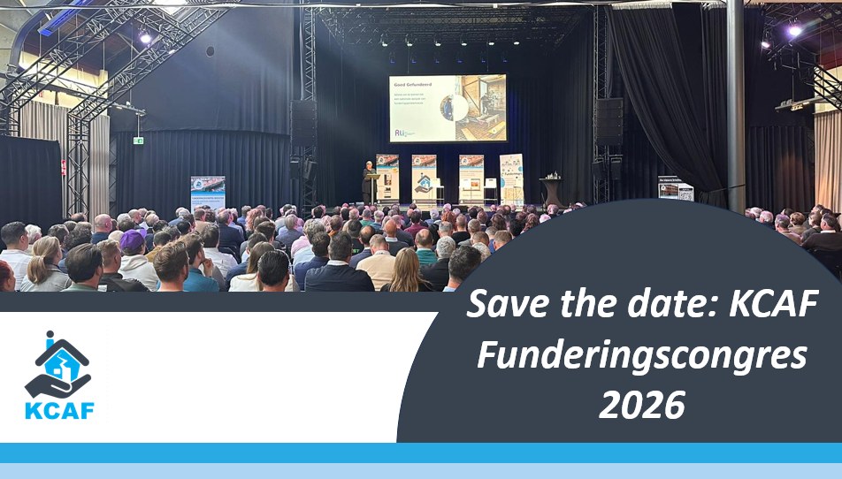 Funderingsproblematiek vraagt om kennis, keuzes en samenwerking. Op 16 april 2026 organiseert het KCAF het volgende KCAF Funderingscongres in de Rijtuigenloods in Amersfoort. Een dag voor beleidsmakers, gemeenten, financiƫle instellingen en professionals om inzichten te delen, praktijkervaringen te bespreken en vooruit te kijken naar een samenhangende aanpak van funderingsproblematiek in Nederland.